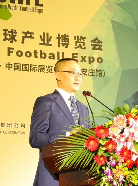 随后,北京中赫国安足球俱乐部常务副总经理高潮先生、南通铁人运动用品有限公司副总经理徐煜洲先生、西梅科技(北京)有限公司联合创始人吴鹏冲先生代表参展企业在发布会上相继发言。